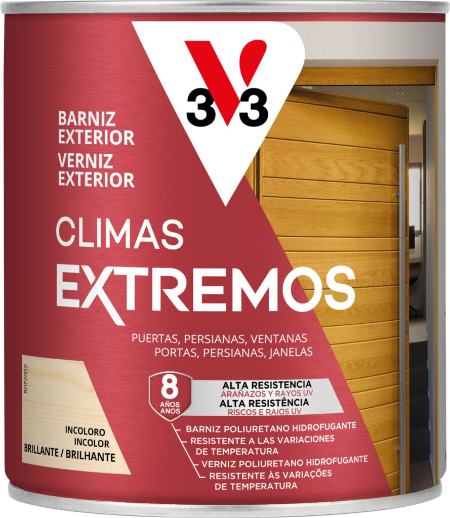 Os vernizes para madeira exterior V33 proporcionam um acabamento estético de alta qualidade à nobre carpintaria exterior. Os vernizes para madeira para exterior V33 garantem alta proteção contra raios UV, intempéries e abrasão. Os vernizes exteriores proporcionam um acabamento perfeito e elevada impermeabilidade.